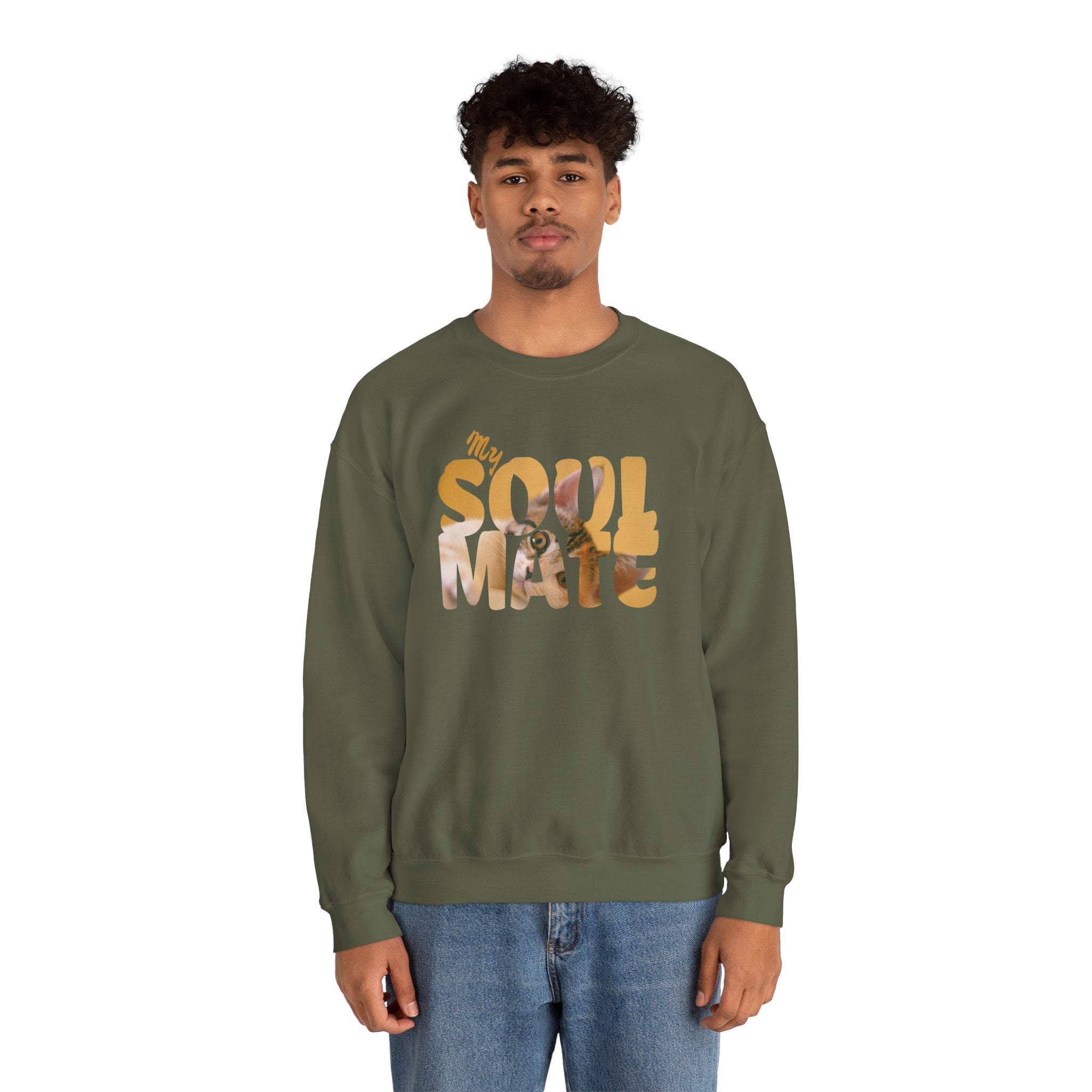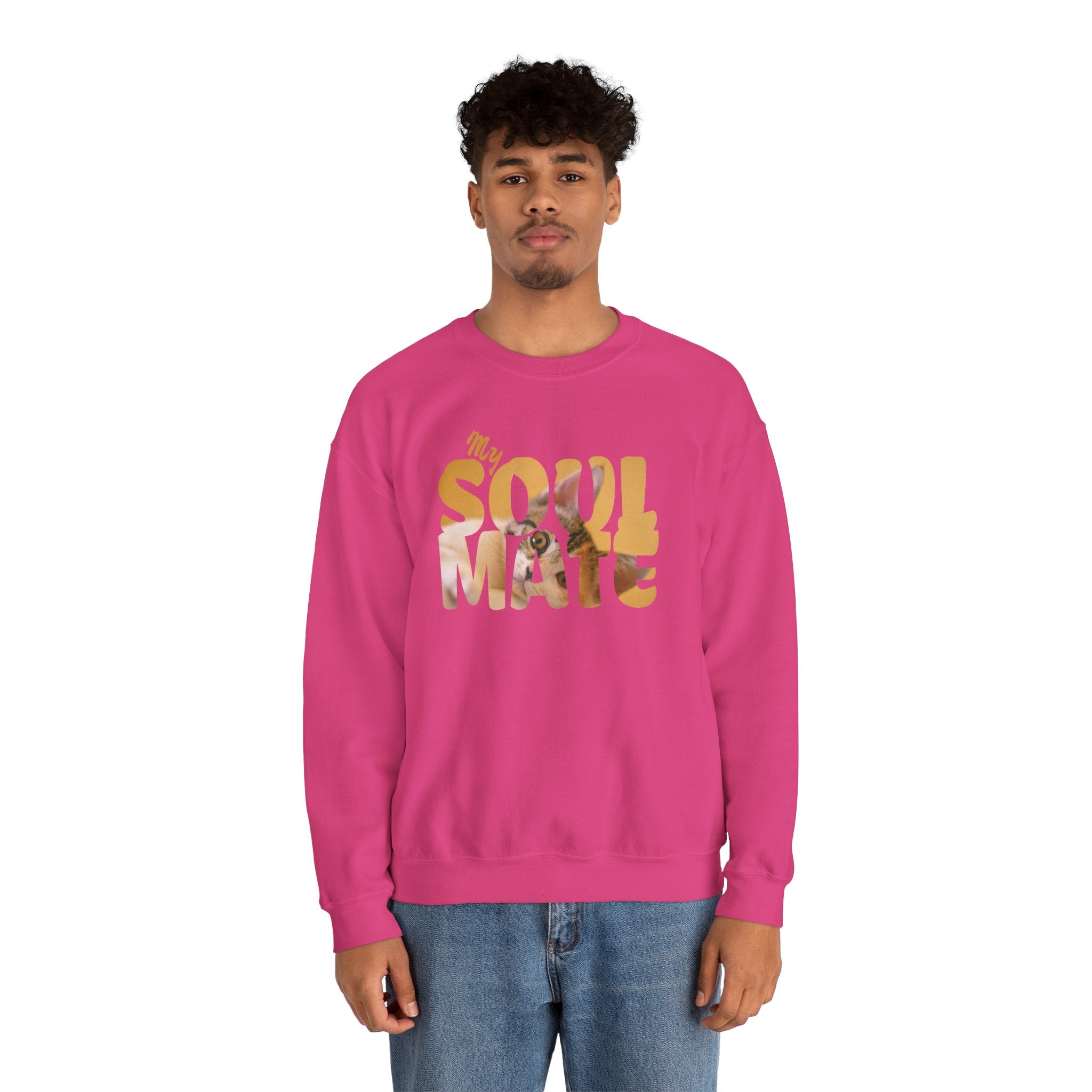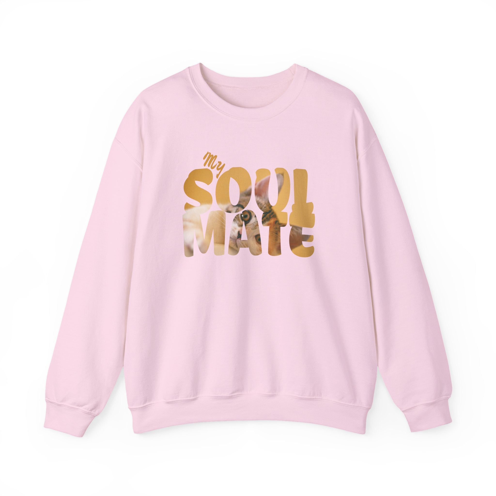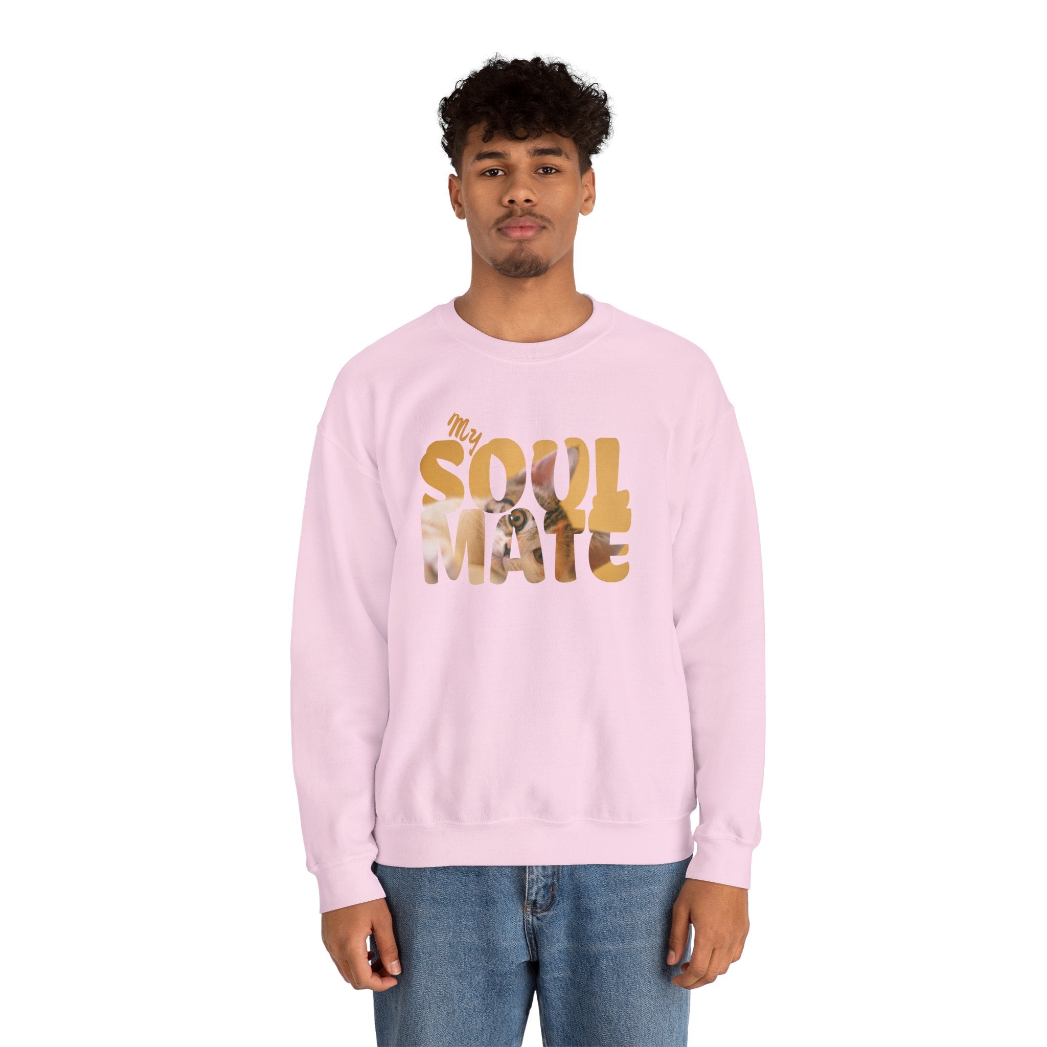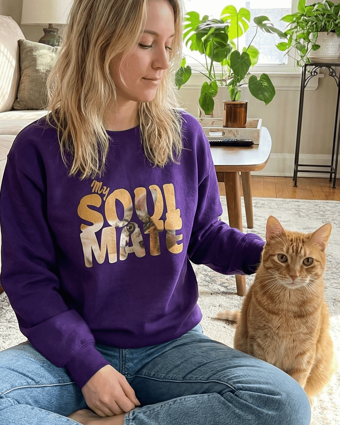 Embrace your feline affinity with the Cat Lover My Soulmate Purple Crewneck Sweatshirt. This soft, mid-weight sweatshirt featuresMy SOULMATEin warm, sunlit lettering over a floral backdrop. Ideal for cool mornings or casual outings, the 50/50 cotton-poly blend ensures both warmth and durability. Stay cozy with ribbed collar and cuffs, tear-away labeling for comfort, and responsibly sourced fibers. Whether relaxing at home or enjoying a city stroll, this sweatshirt embodies quiet warmth and sentimental charm. Care instructions: Machine wash cold, non-chlorine bleach, tumble dry low heat, do not iron or dry clean.