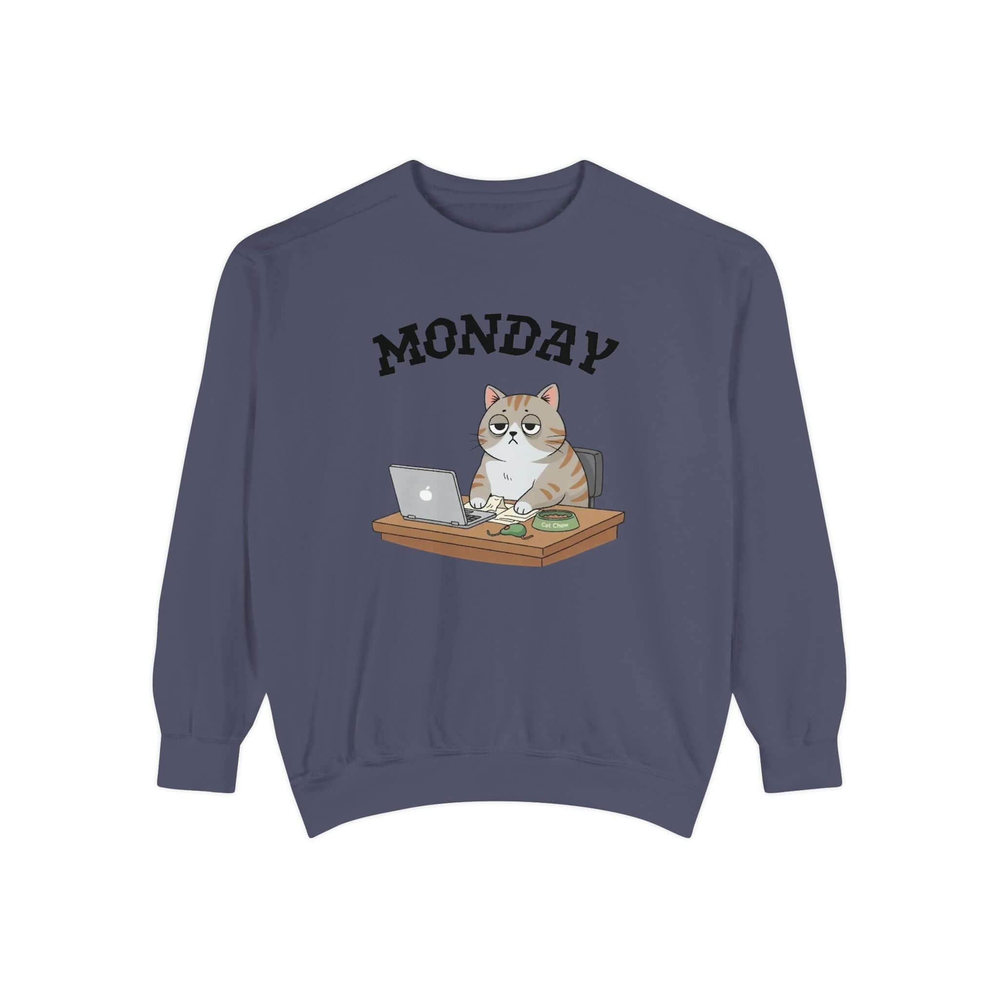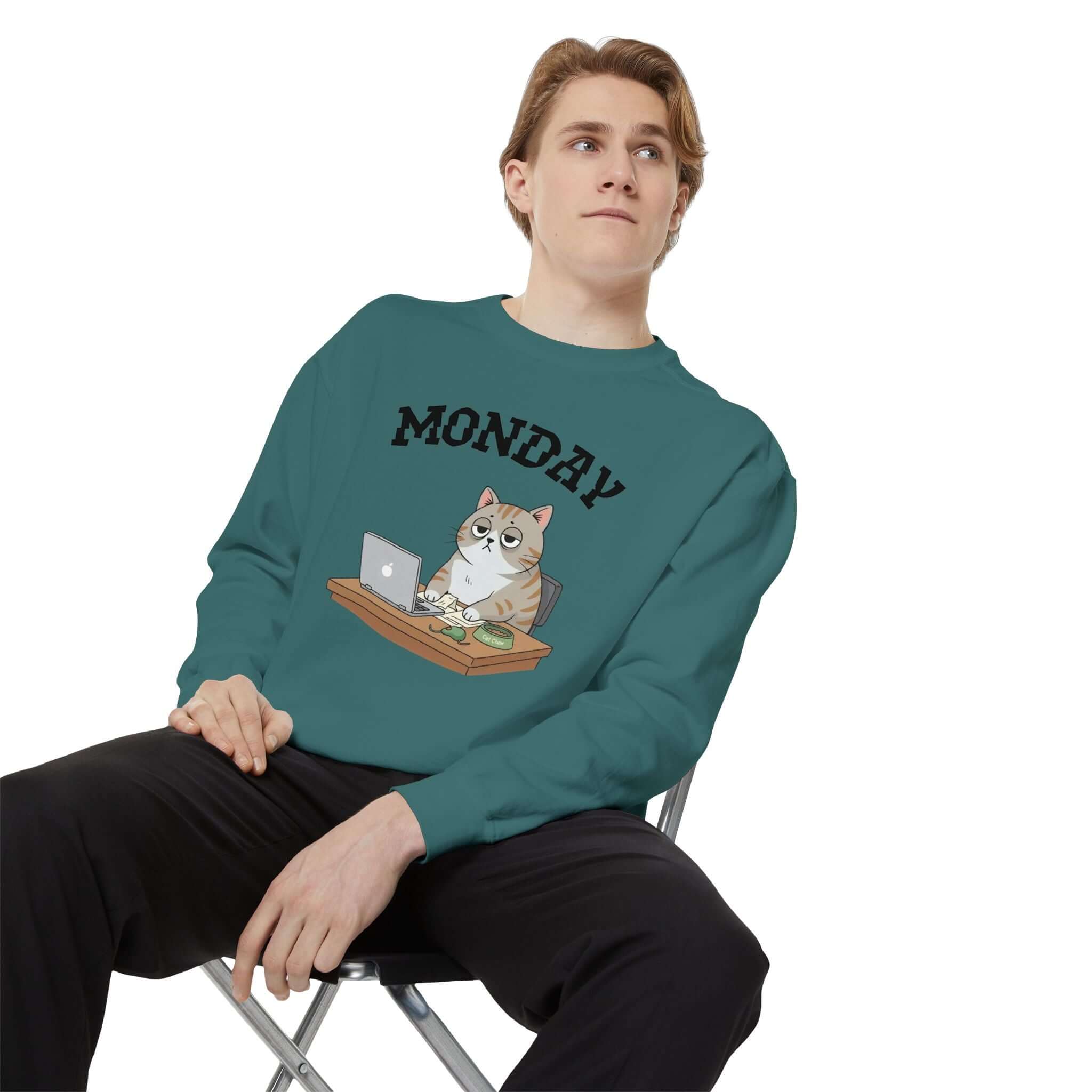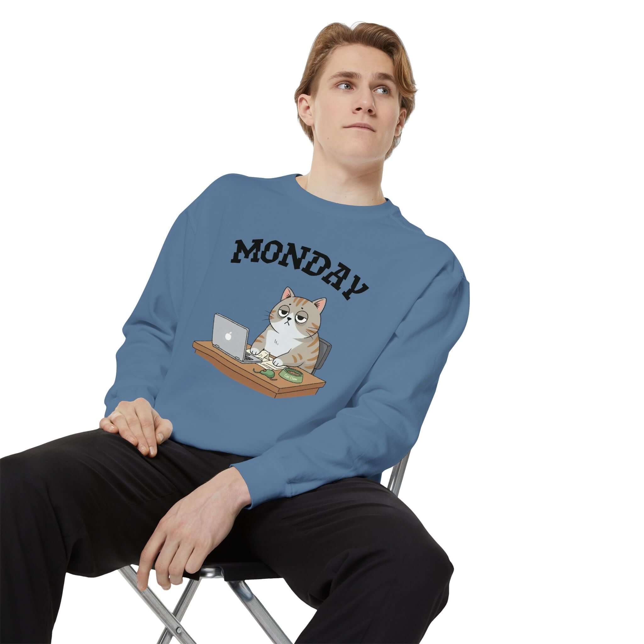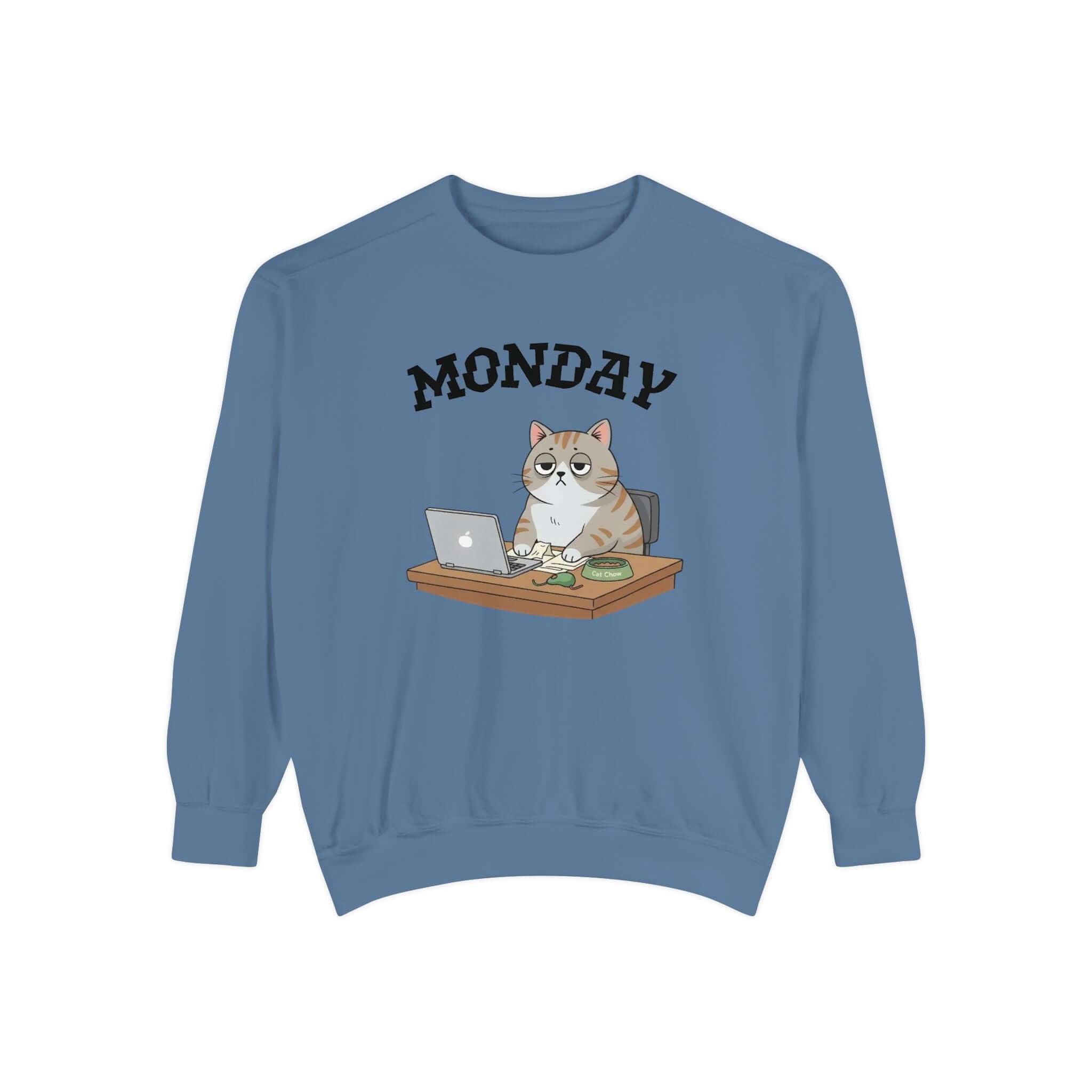 Stay cozy and stylish with our Cat Stares Unisex Crewneck Sweatshirt! This sweatshirt boasts a soft, lived-in feel perfect for relaxed days. Featuring a cat staring blankly under a playful “MONDAY” banner, this sweatshirt adds a touch of gentle sarcasm to your wardrobe. Made of 80% ring-spun cotton and 20% polyester blend, it offers a luxe hand feel and a comfortable fit. Enjoy the ribbed collar and cuffs for a stretch-and-recovery fit, while the sewn-in twill neck tape and half-moon back patch ensure stability and comfort. Available in S, M, L, XL, 2XL, 3XL in various colors. Machine wash cold for easy care.