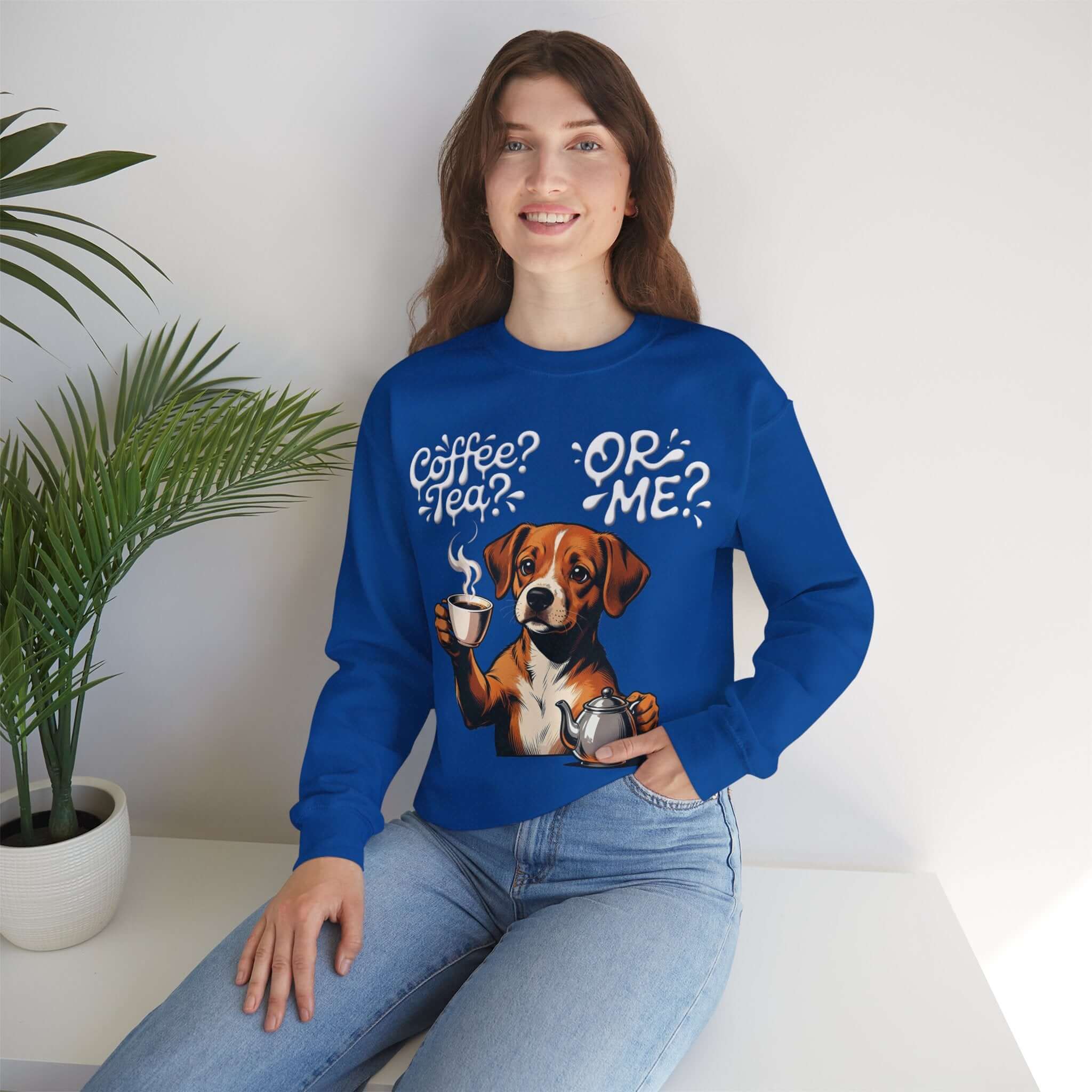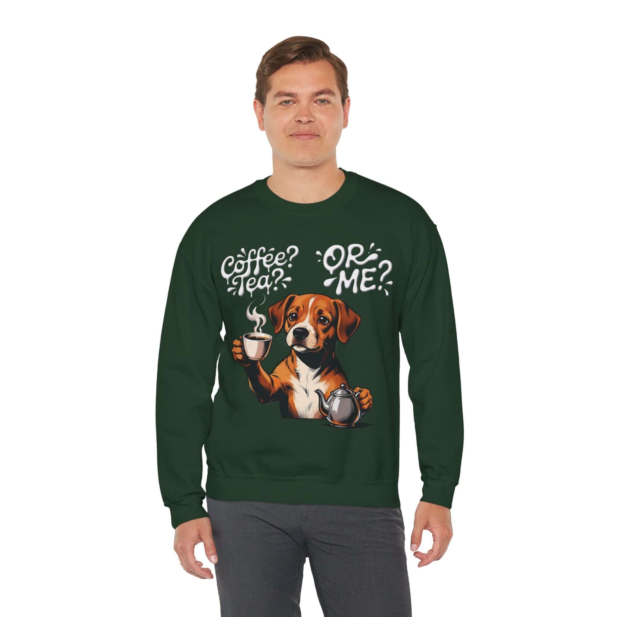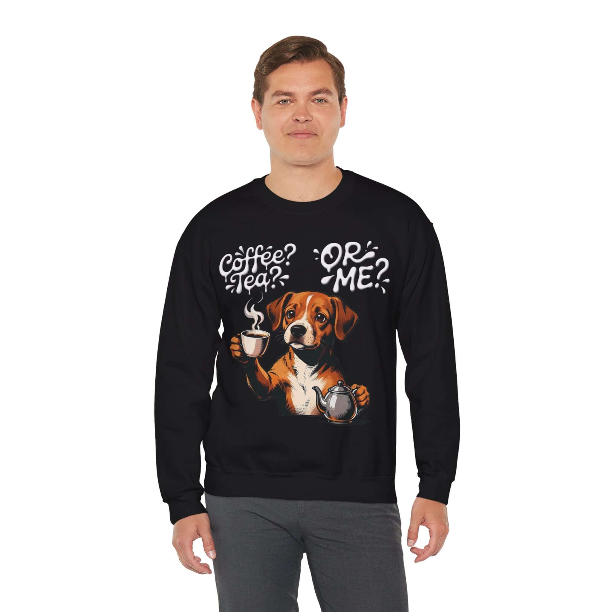 Dog Graphic Unisex Crewneck Sweatshirt – Cozy Coffee Tea Theme