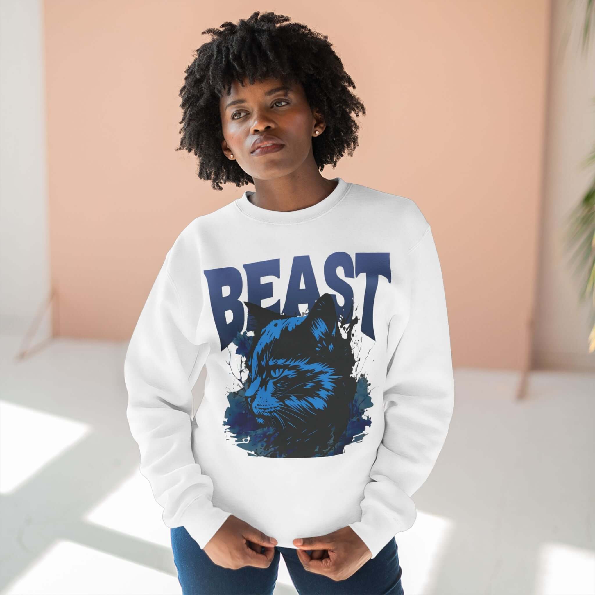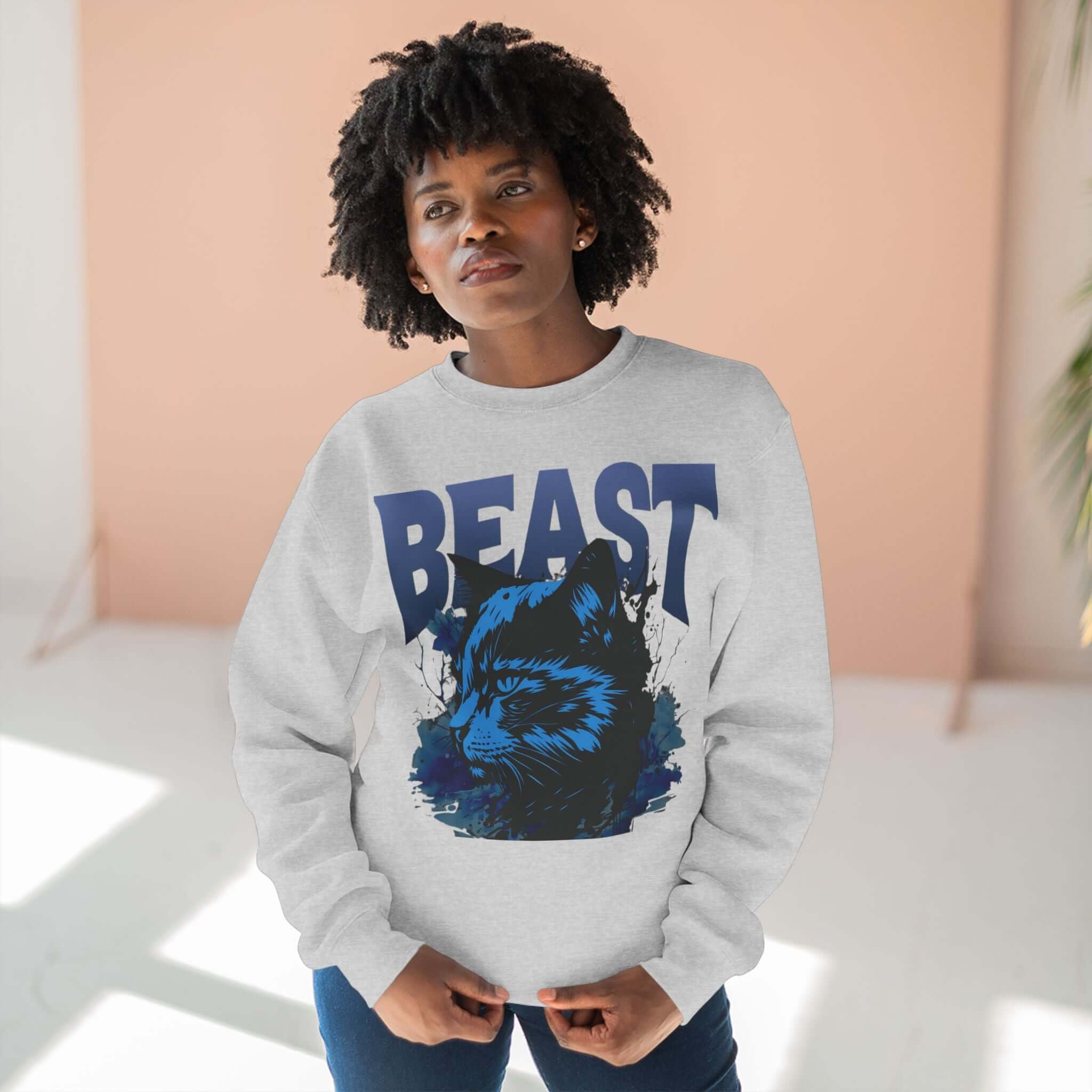 Express your love for felines with this Feline Lover Unisex Crewneck Sweatshirt in classic black. Whether lounging at home or out running errands, this medium-heavy sweatshirt offers a cozy fit. Made from an 80% Cotton and 20% Polyester blend, it ensures durability and comfort. This regular-fit sweatshirt features a ribbed knit collar for shape retention and tear-away labels for added comfort. An ideal gift for cat enthusiasts on any occasion.
