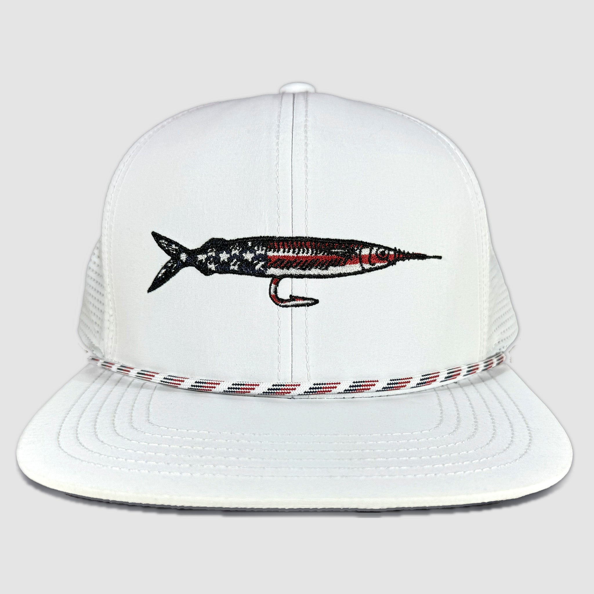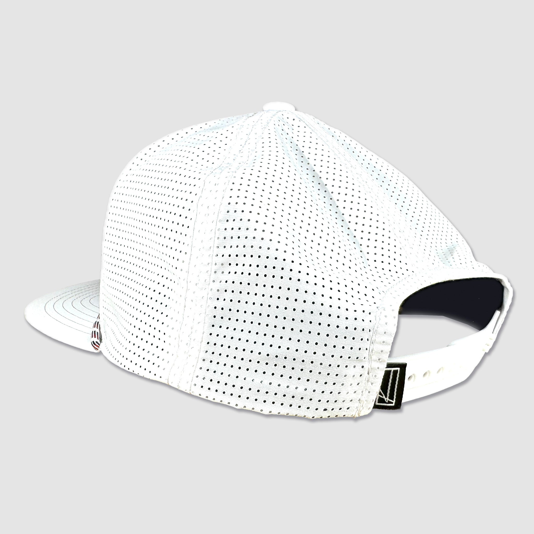 Discover comfort and style with this USA Ballyhoo white performance snapback hat featuring red/white/navy rope cord detailing. Designed with a curved bill and lazer-perforated performance back, this 5-panel hat made of 80% Nylon and 20% Polyester is perfect for any casual day out. One size fits most. Order today and enjoy the ultimate headwear experience!