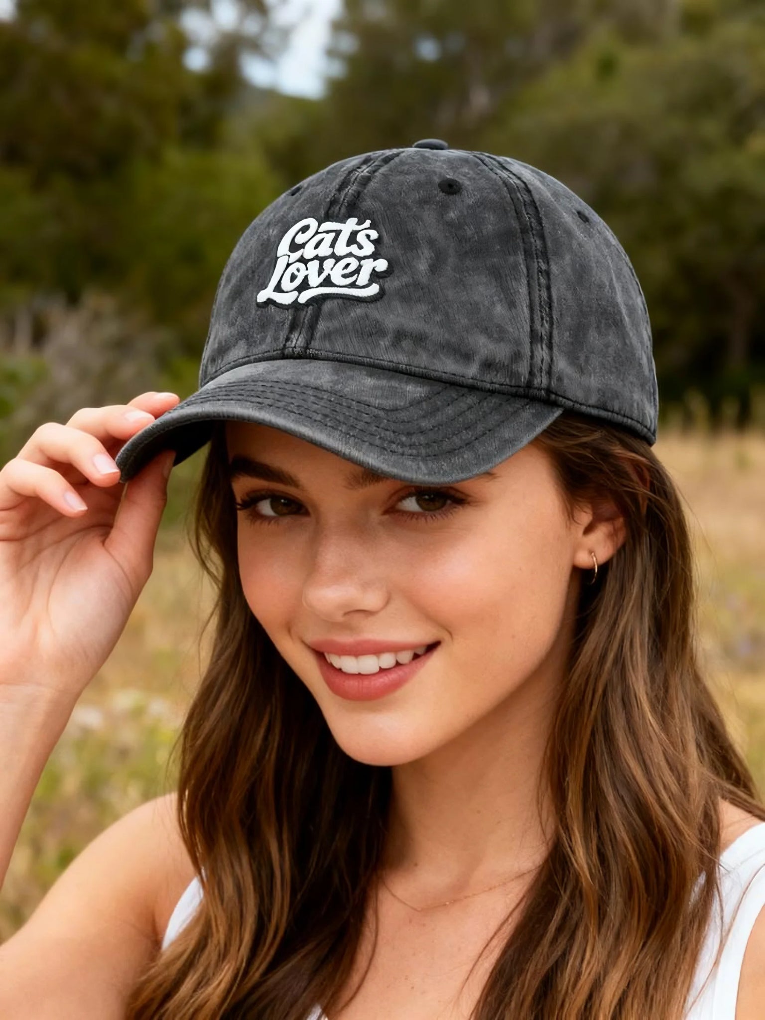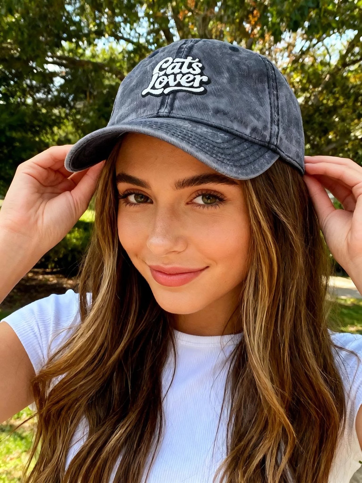Express your love for cats with the Vintage Cats Lover Embroidered Dad Hat in Grey. Made of soft 100% cotton twill, this low-profile cap features a raised embroideredCats Loverscript for a subtle yet bold look. The antique-brass metal snap buckle ensures a comfortable fit, while the black sweatband and sewn eyelets add vintage charm. Perfect for leisurely strolls or casual outings, this hat blends comfort with expression effortlessly.