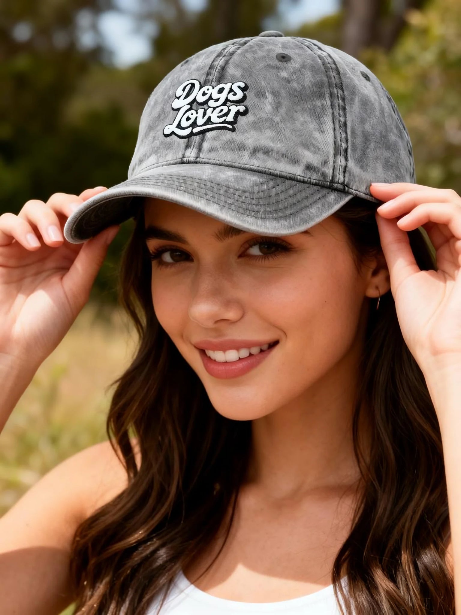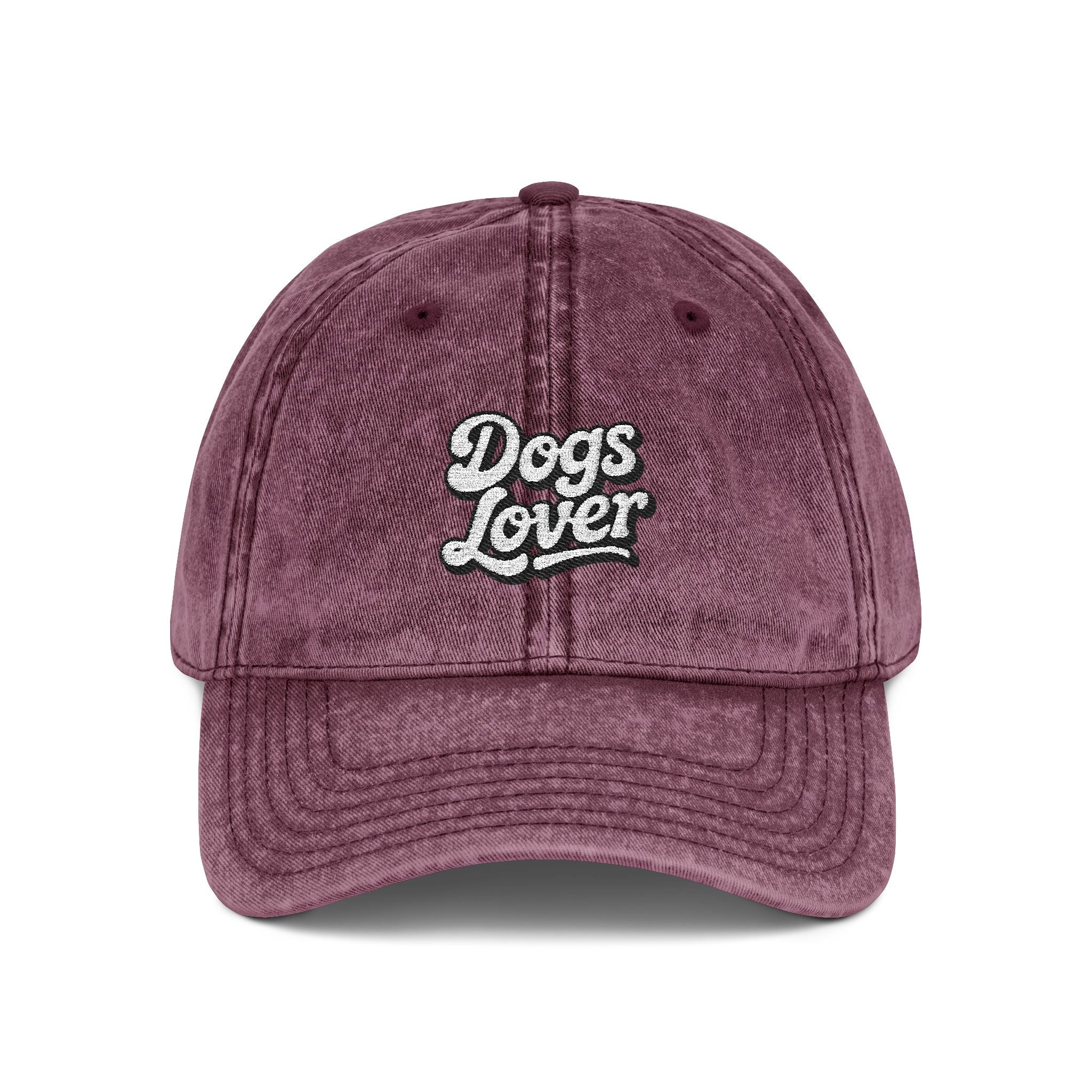 Enhance your style with this vintage embroidered Dogs Lover cap in grey. Made of 100% cotton twill, this unstructured hat features a low-profile silhouette and raised embroidered script. The antique-brass metal snap buckle ensures a secure fit. Perfect for casual outings or adding a touch of personality to your look. Keep it clean with warm water and dish soap, ensuring a soft, bristled brush for tough spots. Circumference: 18.50 – 23.23 inches. Height: 4.33 inches. Width: 7.09 inches. Panel height: 2.83 inches.